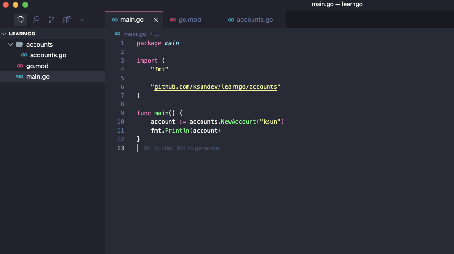 - Account{...}는 새로운 Account 구조체를 메모리에 생성한다.
