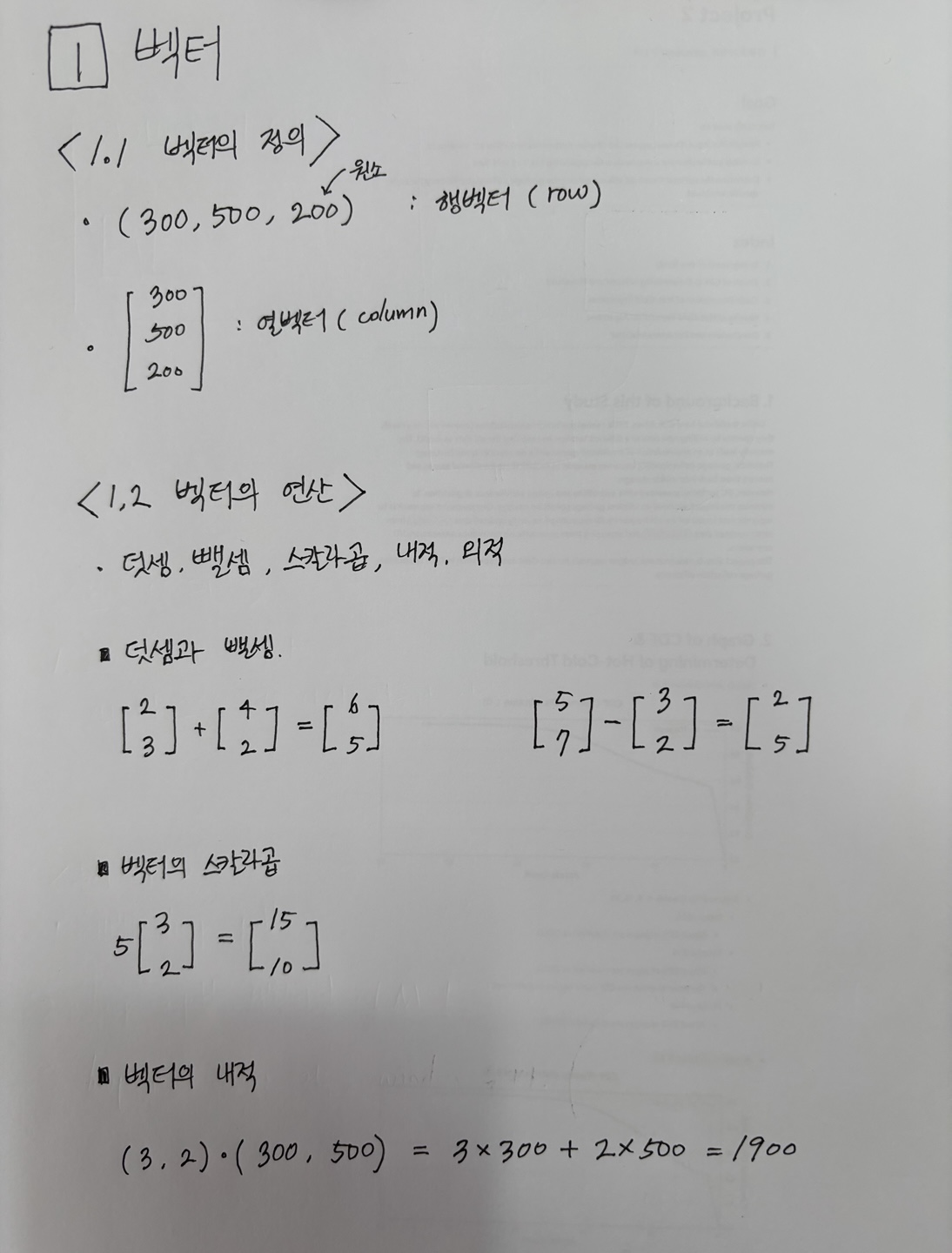 - 열벡터 = n×1 행렬 (n행 1열)
