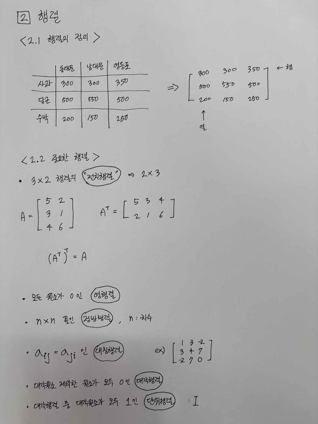[행렬대수] 행렬의 정의와 중요한 행렬들 본문